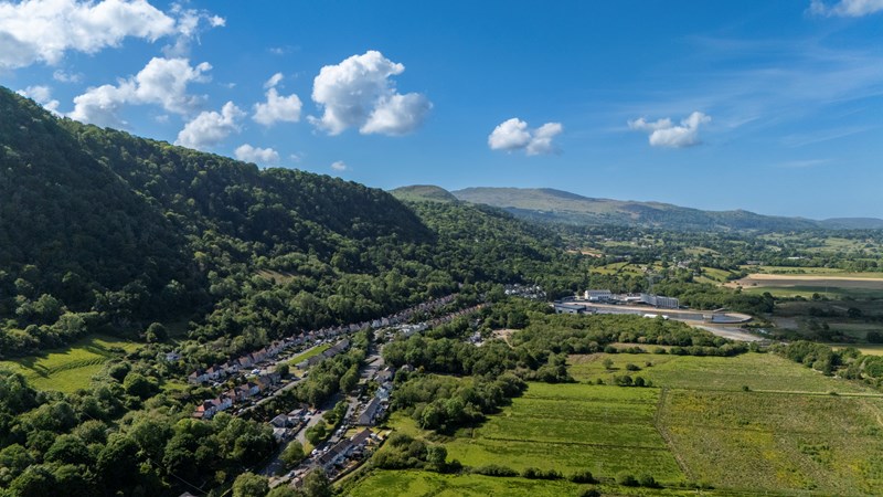 The village’s industrial past, combined with its rural surroundings, has left a remarkable legacy on the landscape with its strings of innovative prefabricated concrete houses built for the factory workers and the iconic twin water pipes descending down the cliffs into the village standing as bold reminders of Dolgarrog’s heritage.